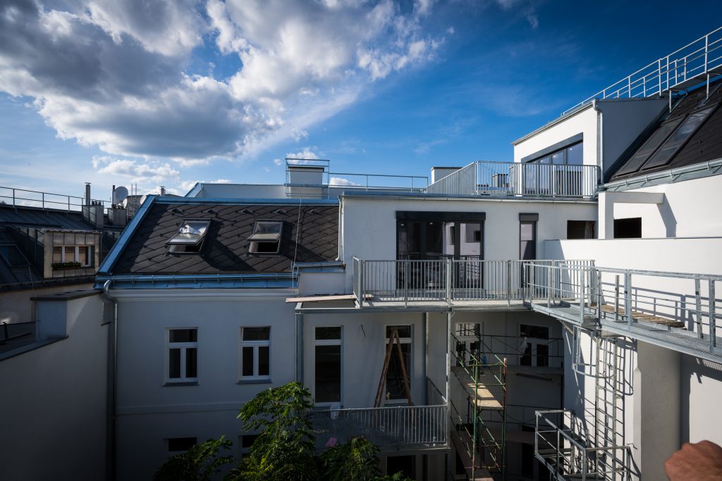 Die Bautätigkeiten sind bereits voll im Gange und der Vertrieb der insgesamt 25 Wohneinheiten ist bereits gestartet. Insgesamt werden etwa 1.800 m² Nutzfläche entstehen, wobei exklusive Dachgeschosswohnungen neu errichtetet werden sowie die bestehenden Altbauwohnungen in den Regelgeschossen generalsaniert bzw. von Grund auf revitalisiert werden. Weitere Informationen zu den Wohnungen findet man hier.