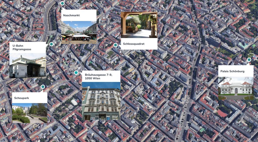 Die „Bräuhausgasse 7-9“ liegt im Herzen von Margareten mit einer sehr guten öffentlichen Anbindung durch den nahe gelegenen Hauptbahnhof und die U-Bahnstation Pilgramgasse.
