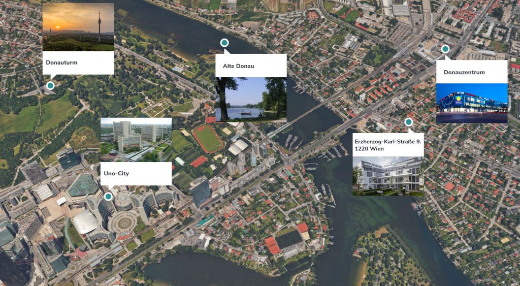 Die Erzherzog-Karl-Straße profitiert einerseits von der Nähe zum Donauzentrum und andererseits von der geringen Entfernung zur Alten Donau, die Spaziergehern, Joggern oder einfach nur Ausgleich suchenden Bewohnern, die optimale Umgebung bietet. Hat man den Donauarm überquert, bietet Kaisermühlen am Fuße des Donauturms, den Donaupark als ein optimales Naherholungsgebiet, das keine Wünsche offen lässt.