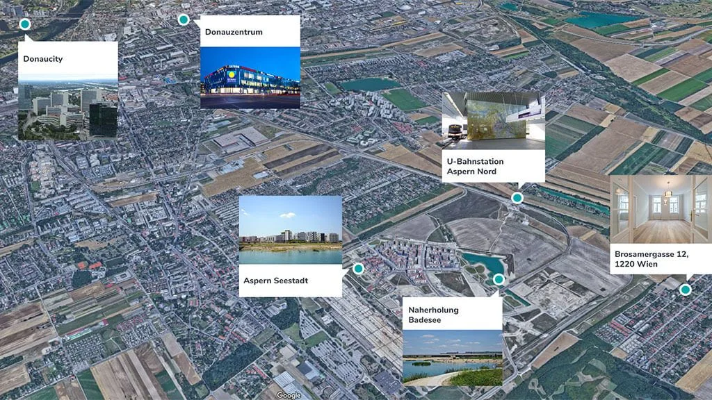 Der 22. Bezirk in Wien, auch als „Wien Donaustadt“ bezeichnet, beherbergt vielfältige Freizeit- und Erholungsgebiete. Besondere Hotspots des Bezirks sind dabei die Alte Donau, der Bereich rund um die Donau-City sowie die Seestadt Aspern. Viele Einwohner schätzen vor allem die familienfreundlichen und ruhigen Wohngegenden des 22.Bezirks mit ausreichend Platz für Familie und sportliche Aktivitäten. Die Seestadt Aspern liegt in unmittelbarer Nachbarschaft zur Brosamergasse, in welcher das Neubauprojekt realisiert werden soll.