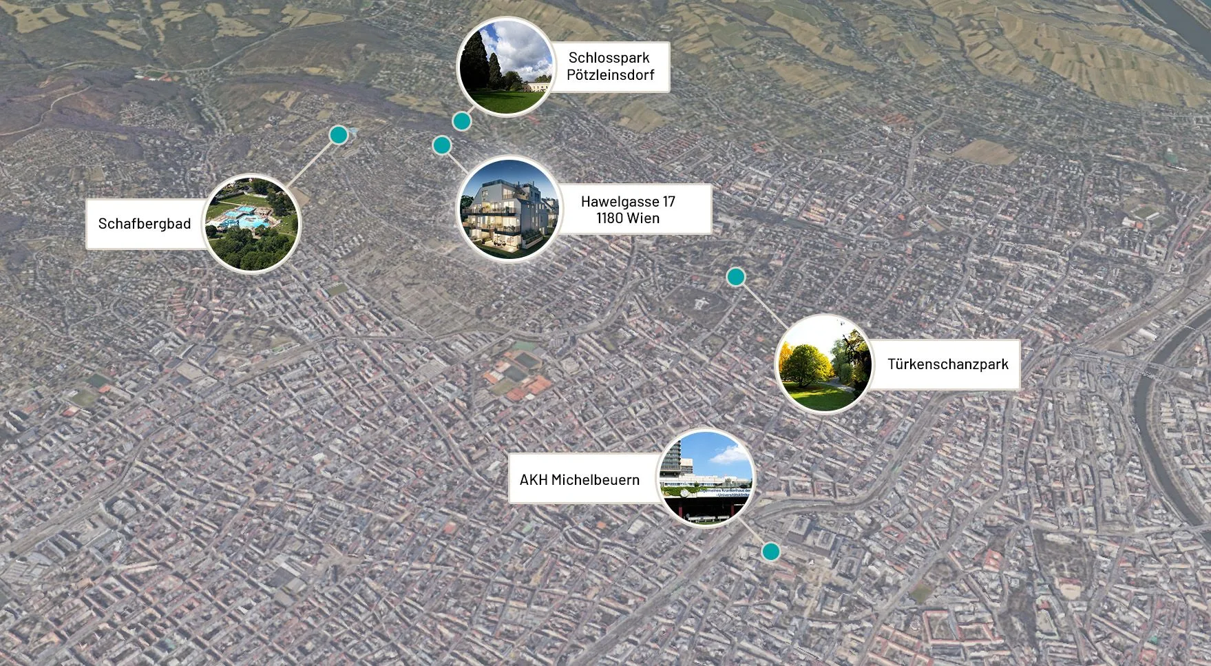 Nichts ist mehr wert als eine gute Lage. Das Projekt „Hawelgasse 17“ liegt in idealer Grünlage zwischen dem Schlosspark Pötzleinsdorf und dem Türkenschanzpark.