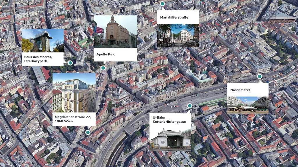 Der 6. Bezirk liegt im Herzen Wiens, der lebenswertesten Stadt der Welt. Dort wo Historie und kulturelle Vielfalt sich vereinigen, liegt der revitalisierte Altbau, in der Magdalenenstraße 22. Die Lage bietet alles was Wohnen in der Stadt gediegen und annehmlich macht und lässt auch infrastrukturell keine Wünsche offen. Verkehrstechnisch ist die Magdalenenstraße ideal angebunden, fußläufig sind die U-Bahnstation Kettenbrückengasse (5 Gehminuten) sowie diverse Bus- und Tramverbindungen (2 Gehminuten) zu erreichen. Mariahilfer Straße, Naschmarkt oder Haus des Meeres - hierzu gelangt man ebenso zu Fuß und in wenigen Gehminuten. Südöstlich ist in 25 Autominuten der Flughafen Wien Schwechat gelegen, in nördlicher Richtung sind zahlreiche Erholungsgebiete inklusive Weinbergen und Heurigen zu erreichen.