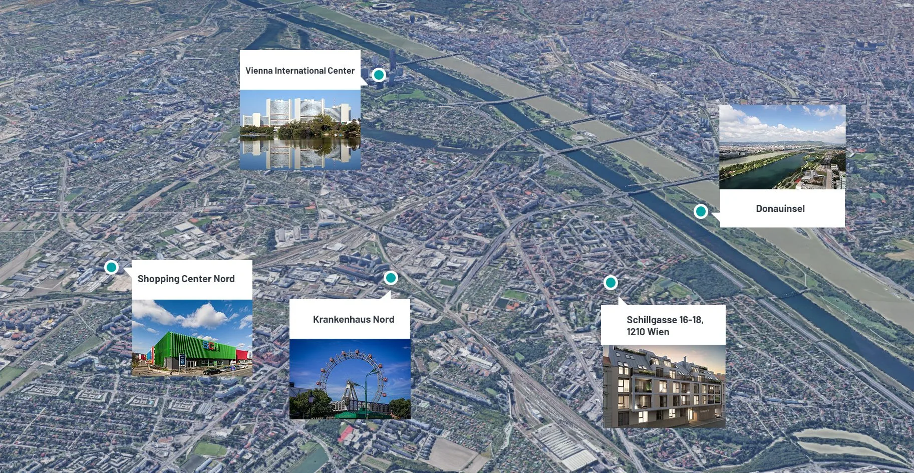 Das moderne Wohnbauprojekt ist umgeben von allen wichtigen Annehmlichkeiten des täglichen Bedarfs und ist aufgrund der Nähe zur Brünnerstraße (Individualverkehr), sowie den Straßenbahnlinien 30 und 31 ausgezeichnet an das Verkehrsnetz angebunden. Mit dem Auto ist man in wenigen Minuten beim Donauzentrum und die Donauinsel ist auch nicht unweit entfernt.
