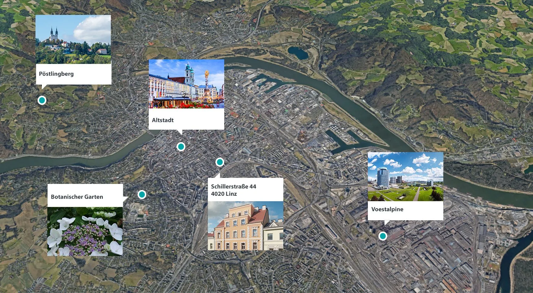 Die oberösterreichische Landeshauptstadt ist mit über 200.000 EinwohnerInnen die drittgrößte Stadt Österreichs und bietet entsprechend viele Sehenswürdigkeiten. Die hervorragende Kulturinfrastruktur mit Lokalen, Geschäften, Theatern, Museen und vielem mehr bietet allen Kunst- und Kulturliebhabern ein breites Spektrum an Aktivitäten. Linz09 – ist unter den Linzern ein bekannter Begriff, denn 2009 wurde Linz als Kulturhauptstadt Europas ausgezeichnet. Nicht nur Kunstliebhaber kommen auf ihre Kosten, auch Naturliebhaber können das Linzer Stadtgebiet entlang der Donau, in den Parks, im Botanischen Garten und in der Erlebniswelt Pöstlingberg genießen. Neben der Kunst- und Kulturszene hat Linz auch eine wichtige industrielle und wirtschaftliche Bedeutung. Einige der größten Unternehmen Österreichs wie Voestalpine, Brau Union und Swietelsky haben ihren Sitz in Linz. Linz ist daher ein idealer Ort zum Leben und Arbeiten.