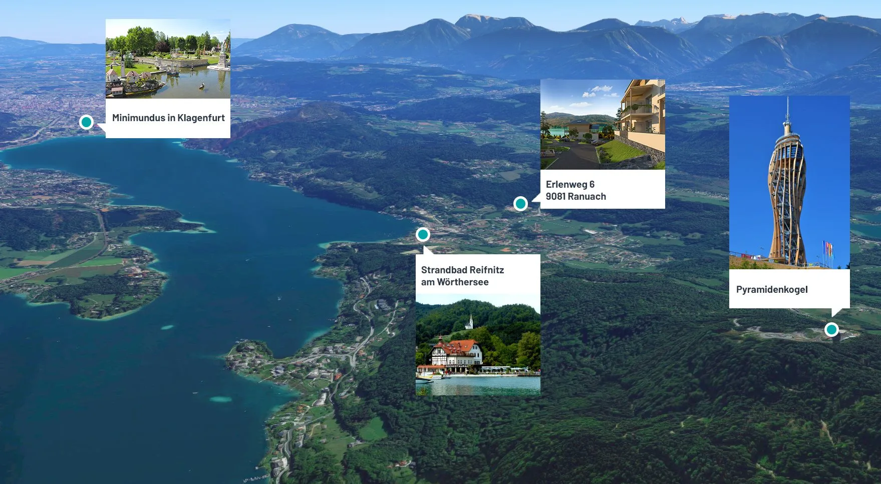 Beim Projekt „Erlenweg 6“ entsteht eine Wohnhausanlage mit sieben Häusern in exklusiver Bauweise mit insgesamt 35 freifinanzierten Eigentumswohnungen zwischen 35 m² und 120 m² mit einer gewichteten Wohnnutzfläche von 2.988 m². Den Bewohnern der Wohnhausanlage stehen neben dem einzigartigen Panorama mit Seeblick auf den Wörthersee auch 60 Garagenplätze sowie 5 Freistellplätze zur Verfügung. Die ideale Platznutzung des weitläufigen Grundstücks bietet eine erholsame und offene Atmosphäre und ein hervorragendes Wohlfühlklima.