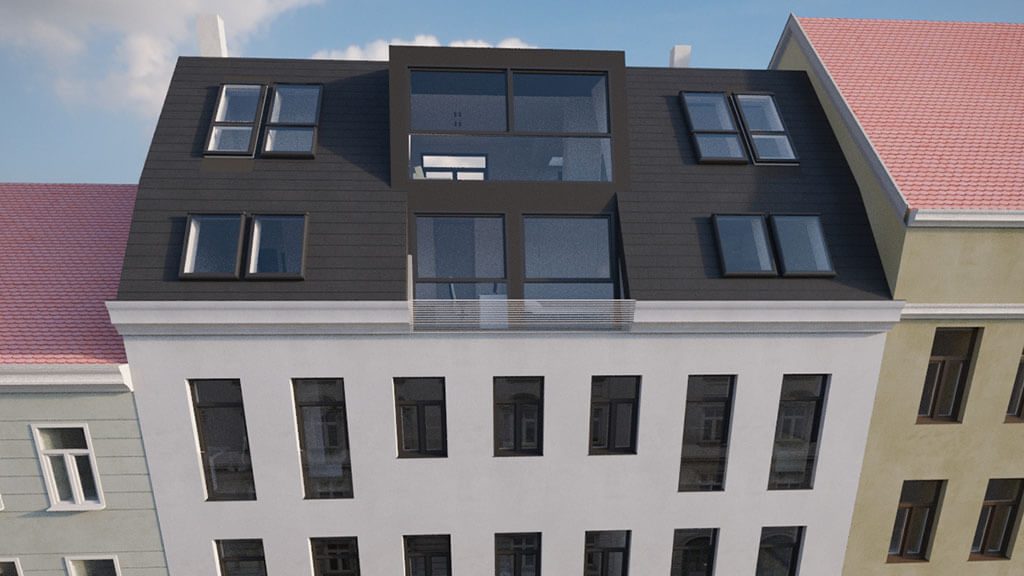 Beschreibung: Fassadengerüst errichtet (50%), Bauaufzug errichtet (50%), Abbrucharbeiten Dachstuhl (100%), Herstellung Verbunddecke (100%), Herstellung provisorische Abdichtung (100%), Herstellung Stahlkonstruktion (95%), Herstellung Liftschacht Baumeister (70%), Zimmererarbeiten (70%), Baumeisterarbeiten Giebelwände, Roste Stahlbeton etc. (50%)