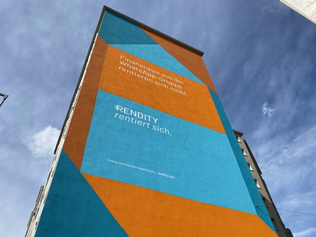 Rendity hat mit Wanda gemeinsam eine Werbewand in der Wiener Hannovergasse gestaltet. Die Botschaft dabei: "Finanztipps aus der WhatsApp-Gruppe rentieren sich nicht. Rendity rentiert sich". Bis Mitte Juni ist die Werbewand in dieser Form noch zu sehen.