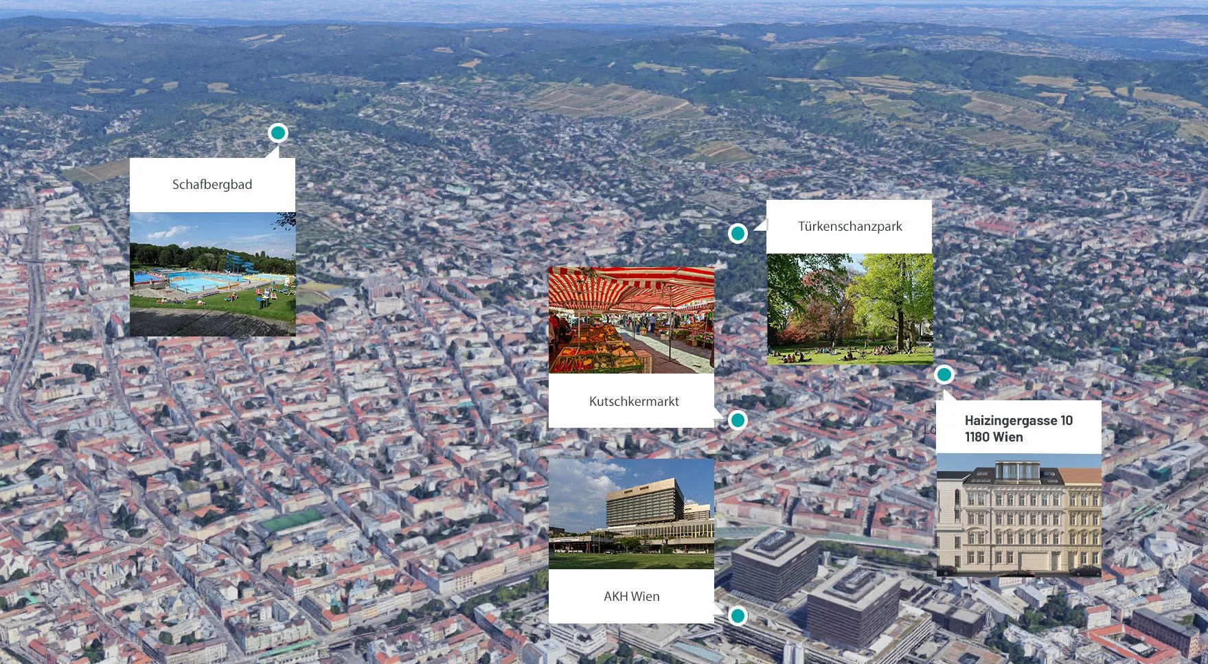 Nothing is worth more than a good location. The "Haizingergasse 10" project is located in the immediate vicinity of the two subway stations Währingergürtel and Nußdorferstraße, which means that the city center can be reached in just 10-15 minutes. The two local recreation areas Türkenschanzpark and the observatory park offer countless opportunities to escape the hustle and bustle of the city. Especially the Schafbergbad am Schafberg attracts many people.